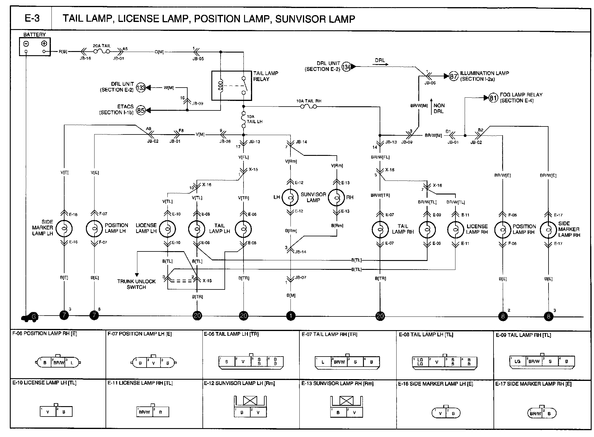 E-3 - Tail Lamp, License Lamp, Position Lamp, Sunvisor Lamp Circuit: