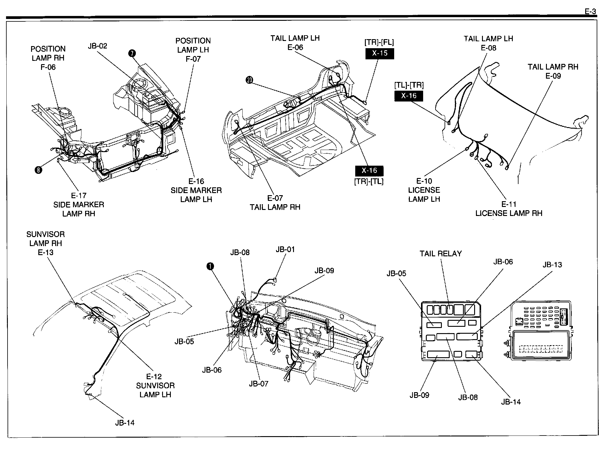 E-3 - Tail Lamp, License Lamp, Position Lamp, Sunvisor Lamp Harness/Connector Symbols: