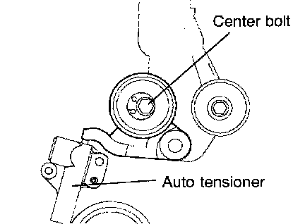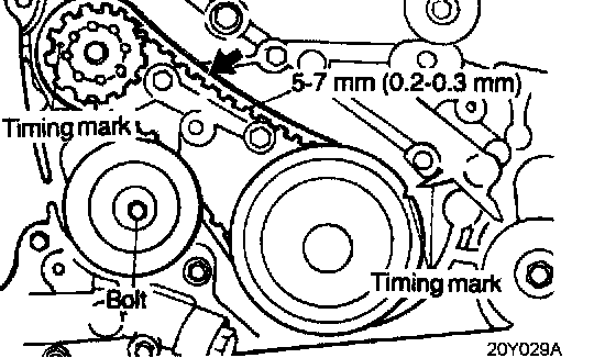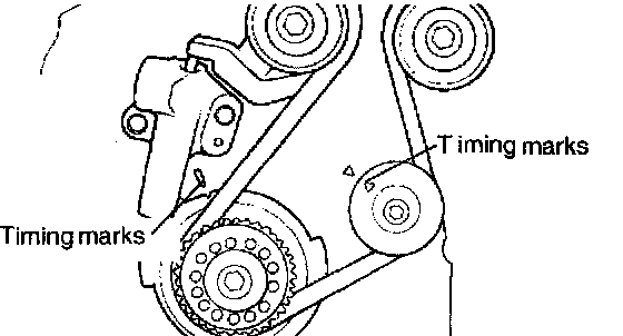 NOTE: If the timing belt is reused, make an arrow mark indicating the turning direction (or the front of the engine) to make sure that the belt is reinstalled in the same direction as before.