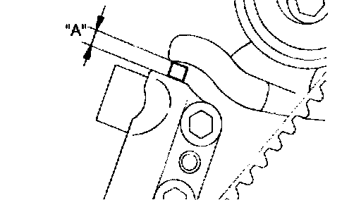 27. Rotate the crankshaft two complete turns clockwise and leave it for about 15 minutes. Then, measure the auto tensioner protrusion "A" (distance between the tensioner arm and auto tensioner body) to ensure that it is up to specification.