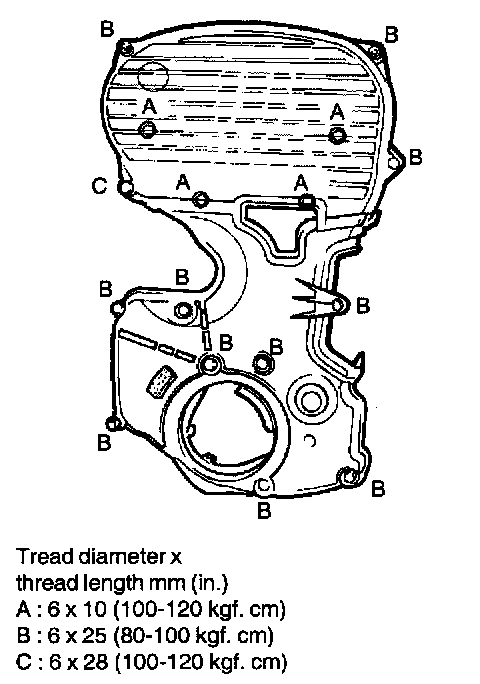Tightening torque Crankshaft sprocket bolt 110 - 130 Nm (1100 - 1300 kg.cm, 80 - 94 ft. lbs.)