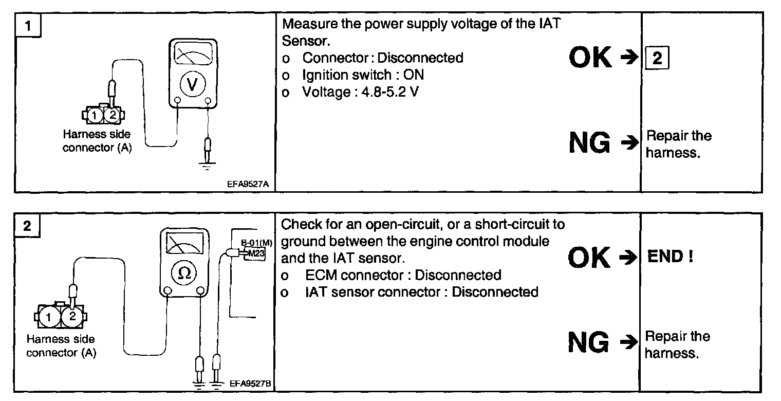 2. Measure the resistance between the IAT sensor terminal 1 and 2.