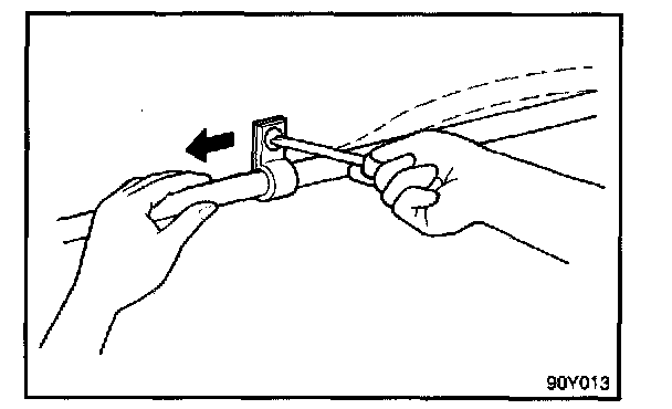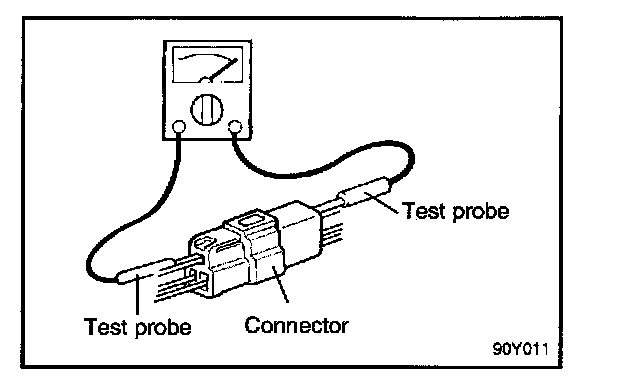 11. When using a circuit tester to perform continuity or voltage checks on connector terminals, insert the test probe from the harness side. If the connector is a sealed connector, insert the test probe in through the hole in the rubber cap for the electrical wires, being careful not to damage the insulation of the wires and continue to insert the test probe until it contacts the terminal.