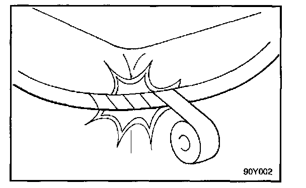 3. If any section of a wiring harness interferes with the edge of a part, or a corner, wrap the section of the harness with tape or something similar in order to protect it from damage.