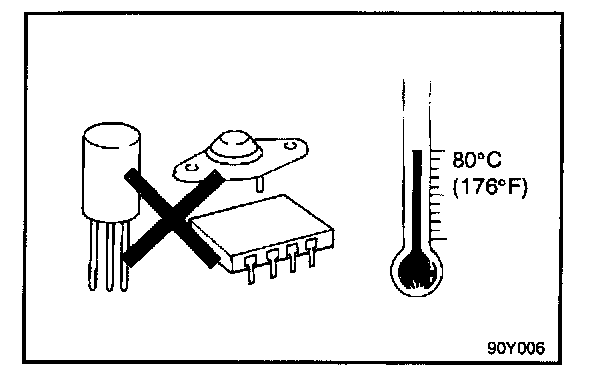 6. The electronic parts used in the computer, relays, etc. are easily damaged by heat. If there is a need for service operations that may cause the temperature to exceed 80 °C (176 °F), remove the electronic parts beforehand.