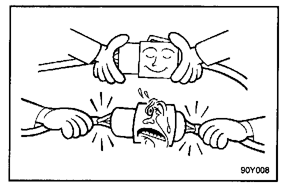 8. When disconnecting a connector, be sure to pull only the connector, not the harness.