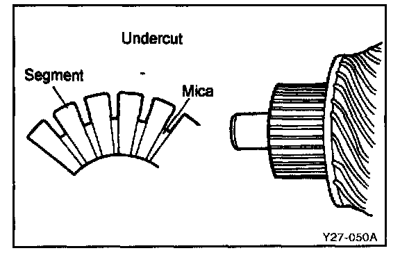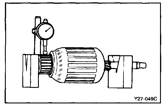 Checking the Commutator1. Place the armature on a pair of V-blocks, and check the deflection by using a dial gauge.