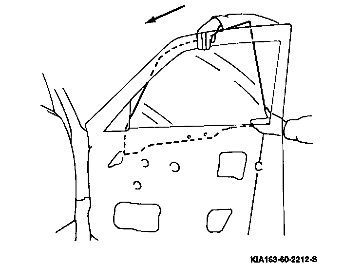 7. Remove glass carefully; hold glass from both its inner and outer surfaces. While tilting it toward hinge side of door, pull it out from outside door frame.