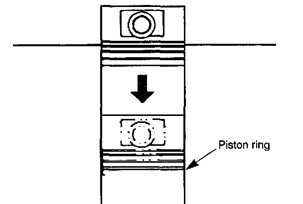 1. Insert a new piston ring into a piston ring groove and check clearance between piston ring and ring end. Clearance between ring and ring end
