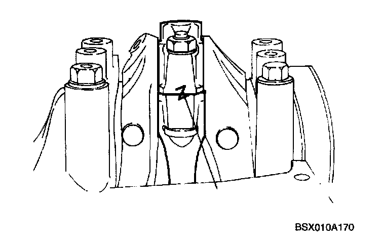 Notice When installing the connecting rods, match marks made on the connecting rod and cap to reference mark made on cylinder block to prevent oil starvation to the connecting rod bearings.
