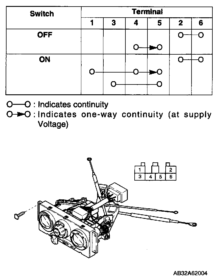 Remove A/C switch and check continuity between terminals.