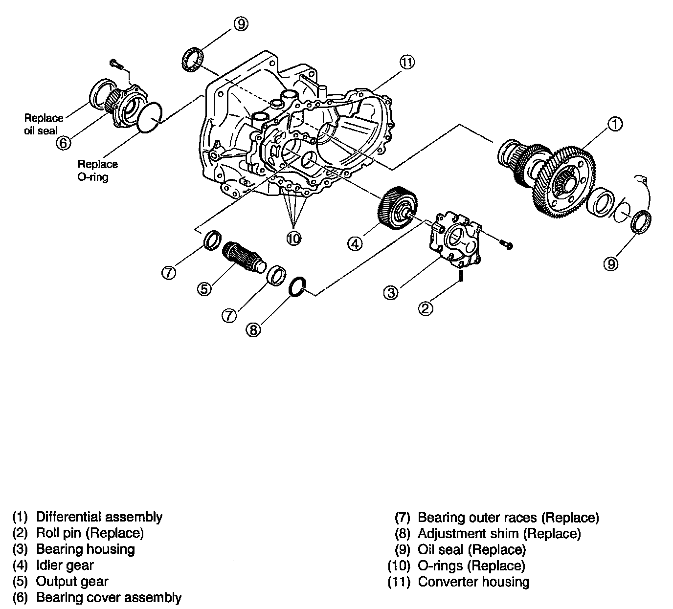 Notice: Install bearing outer race during reassembly to adjust preload.