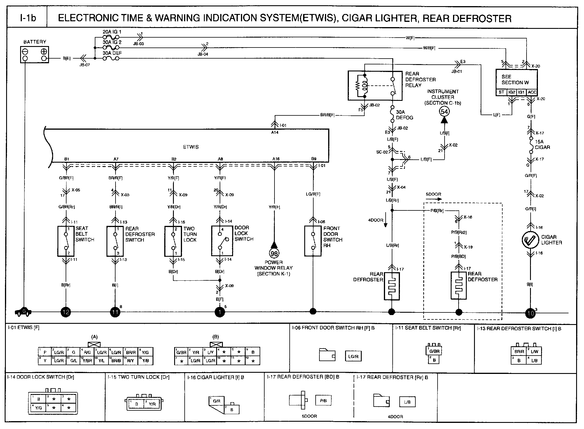 I-1b - Electrical Time & Warning Indication System(ETWIS), Cigar Lighter, Rear Defroster Circuit: