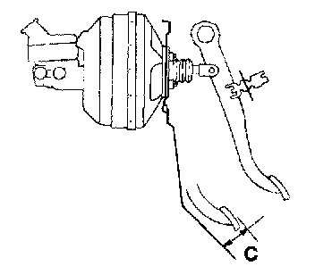 3. Start the engine, apply the brake pedal with approximately 500 N (50 kg, 110 lbs.) of force, and measure the clearance between the brake pedal and the floor board.