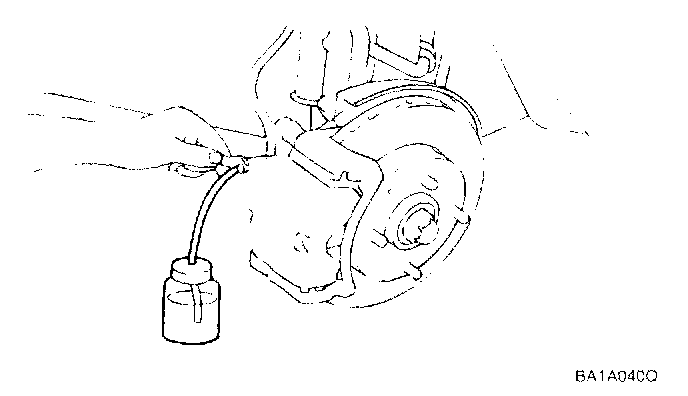 1. Refer for air-bleeding procedures.2. Connect a vinyl tube to the bleeder screw of each wheel cylinder. Put the other end of the vinyl tube into a container to receive the brake fluid