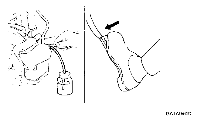 4. Depress the brake pedal a few times. Then loosen the bleeder (with the brake pedal still depressed), and tighten it after the brake fluid stops flowing.