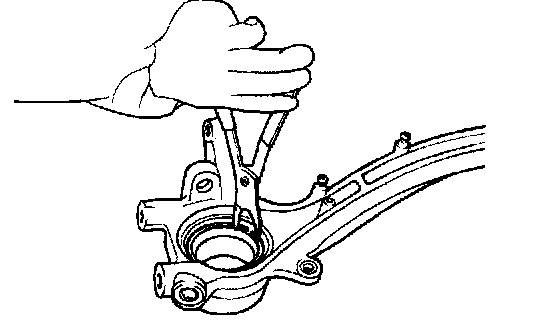 NOTE: Do not press the outer race of the wheel bearing. That will cause damage of the bearing assembly.