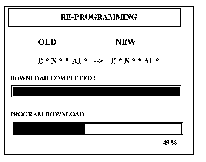 If reprogramming did not complete properly or was interrupted, repeat process using the following procedure.