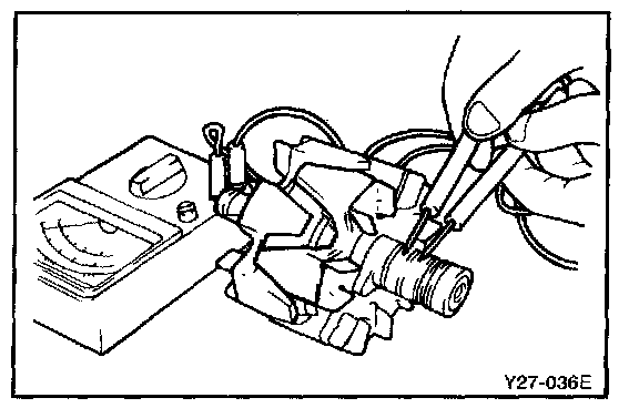 2. Check the rotor coil for a ground. Check that there is no continuity between the slip ring and the core. If there is continuity, replace rotor assembly.