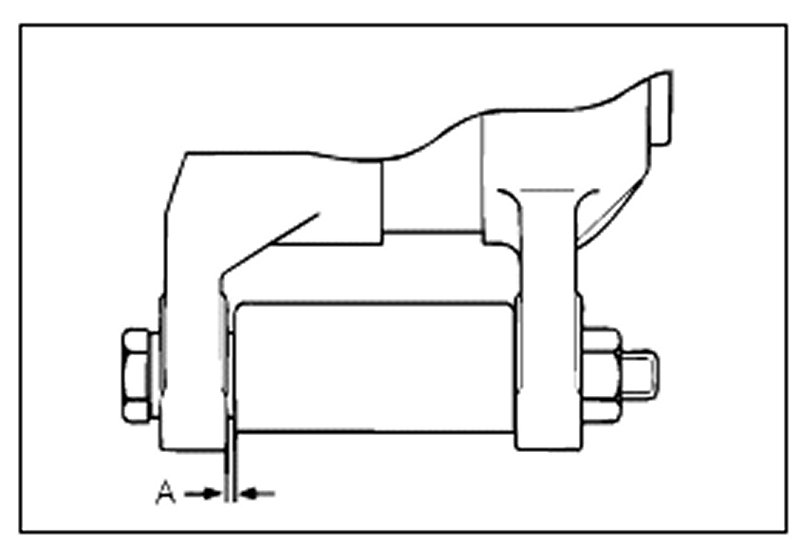 2. After pushing the alternator forward, count how many spacers (a spacer thickness is 0.198 mm) should be inserted between the alternator front leg and front case as shown in "A"