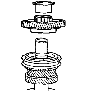 1. Check the helical gear and clutch gear teeth for damage or wear.