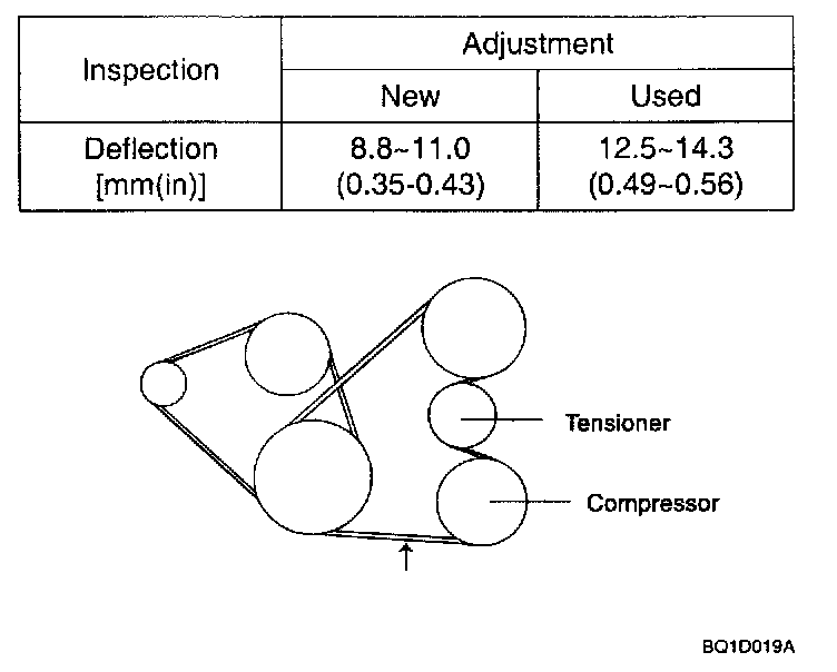 2. If noise or slippage is detected, check the belt for wear damage, or breakage on the pulley contact surface, and check the pulley for scoring. Also check for the proper belt deflection measurement.