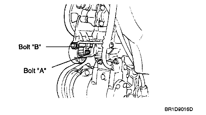 2. Apply 100 N (22 lbs.) force to the belt back midway between the pulleys as shown in the illustration, measure the amount of deflection with a tension gauge.