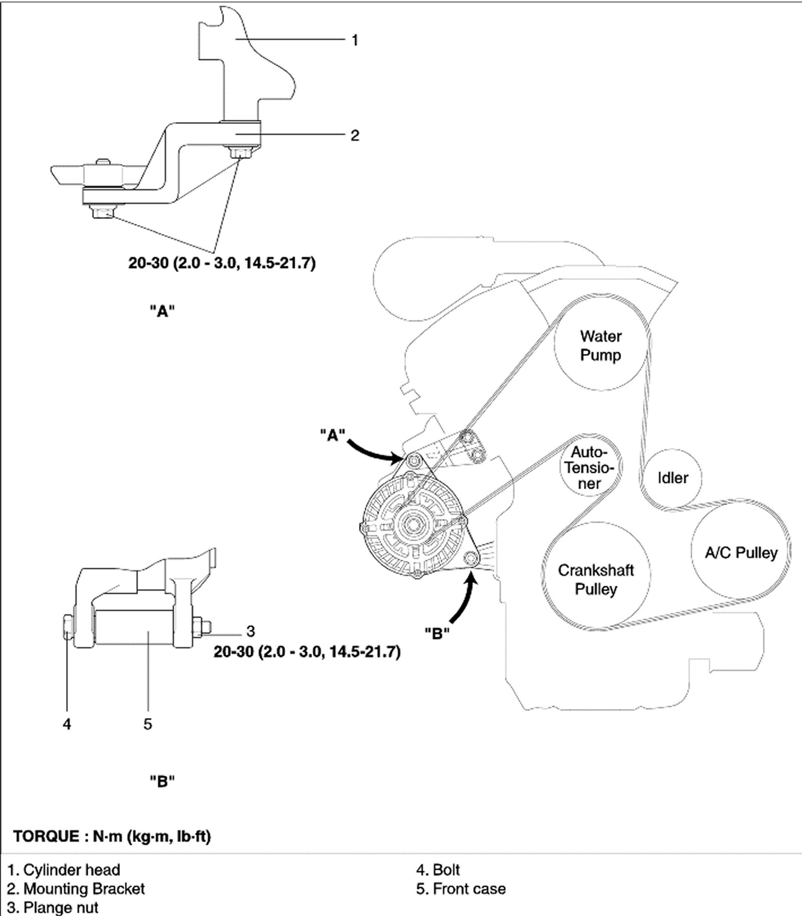 1. Place the alternator and insert a support bolt (Do not insert a nut at this time)