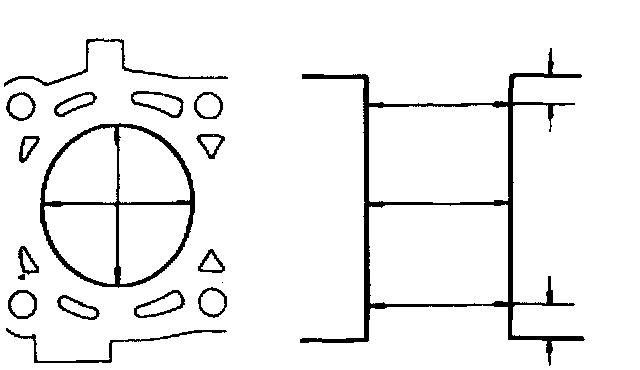 6. Take cylinder measurements at top, center and bottom of cylinder to check for cylinder diameter, taper and out-of-round.