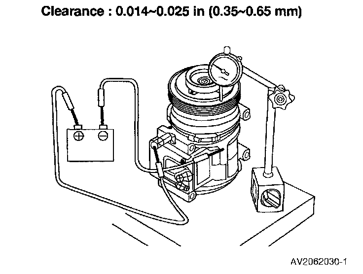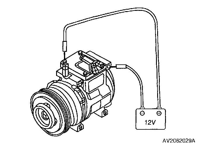 1. Verify that magnetic clutch operation noise to determine condition when connecting 12 V to compressor clutch terminal and ground compressor body.