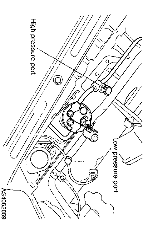 Recovery/Recycling/Charging System to the high-pressure service port and the low-pressure service port, as shown, following the equipment manufacturer's instructions.