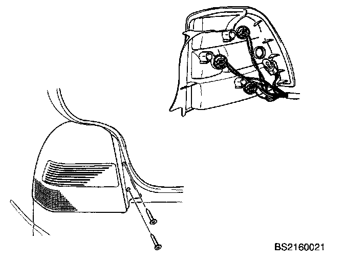 3. Remove two screws and two nuts attaching rear combination light assembly to vehicle.