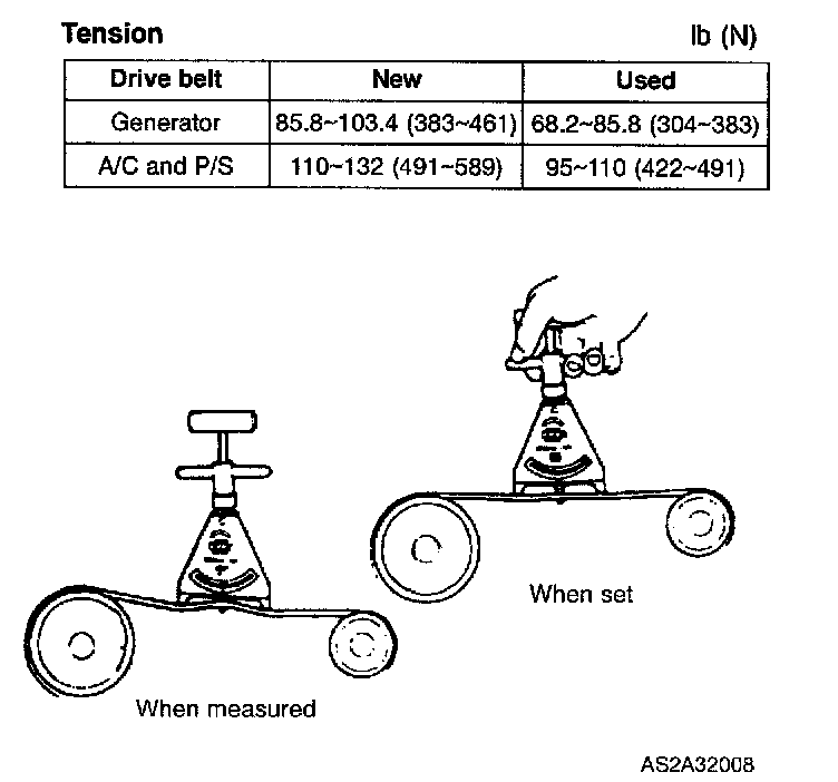 2. Measure drive belt tension with a tension gauge.