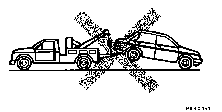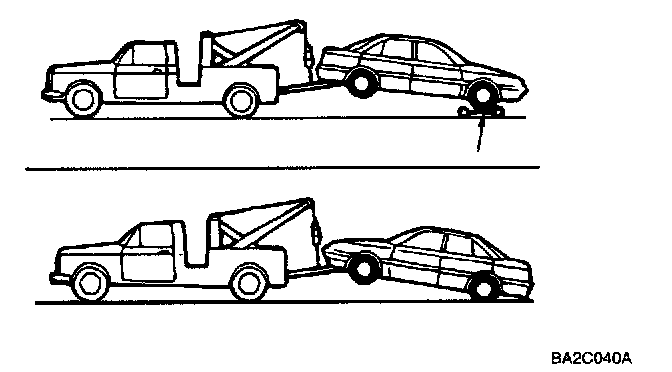 a. Do not tow vehicle backward with driving wheels on the ground. This may cause internal damage to transmission.