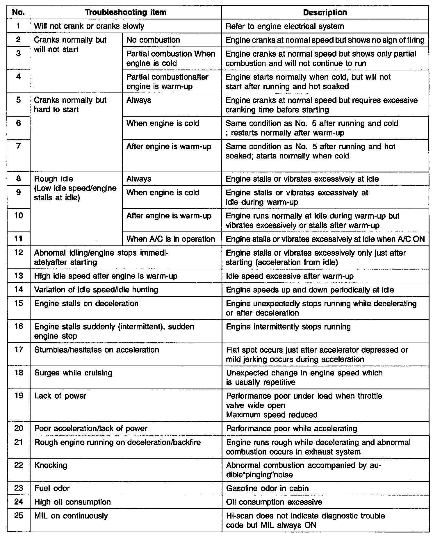 Hesitation: Delay in increase in engine speed occurring just after the accelerator pedal is depressed.