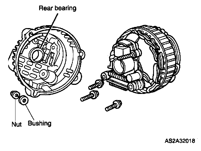 4. Place rotor in a vise and loosen locknut, then disassemble pulley, rotor, and front housing.