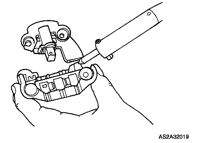 1. Assemble brush, and solder pigtail so that wear limit line of brush projects 0.079 - 0.118 in (2 - 3 mm) out of brush holder.