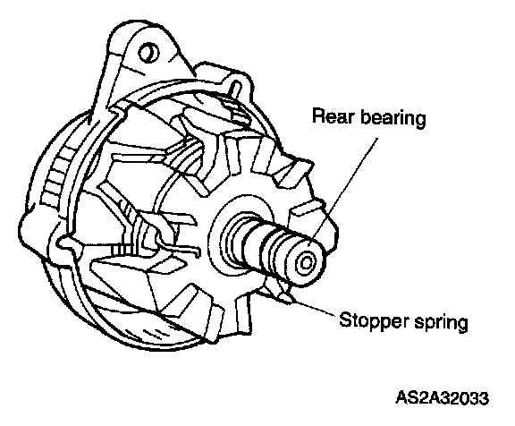 NOTE: Be careful not to lose the stopper spring that fits around the rear bearing.