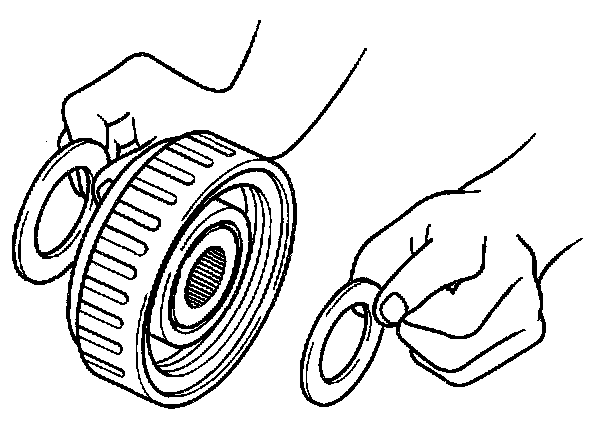 12. Apply petroleum jelly to thrust bearings and secure them to each side of 3-4 clutch drum.