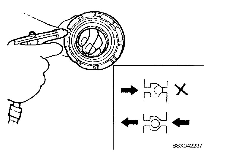 b. If clearance is not within specification, adjust it by selecting snap ring with correct thickness.
