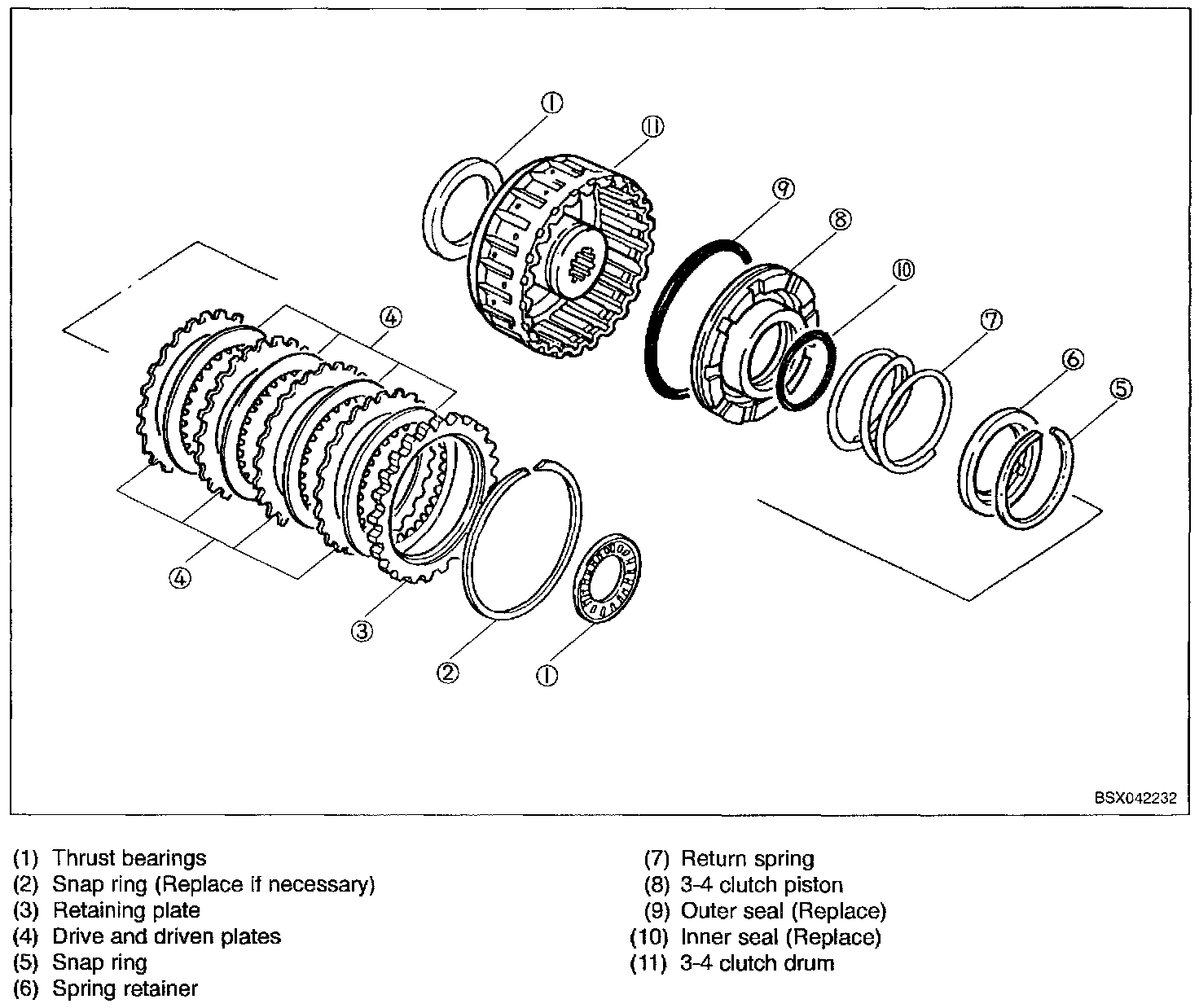 3-4 clutch clearance: 0.051 - 0.063 inch (1.3 - 1.6 mm)
