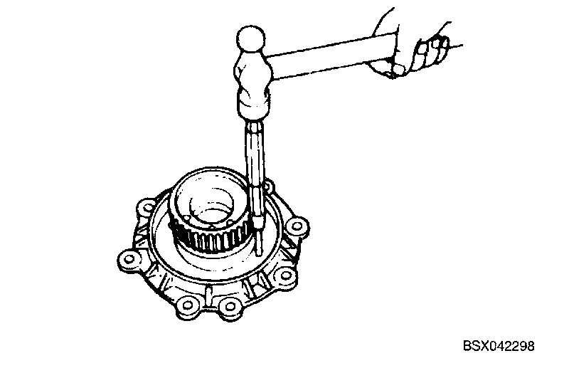 2. Remove bearing outer race with a pin punch and hammer as shown.