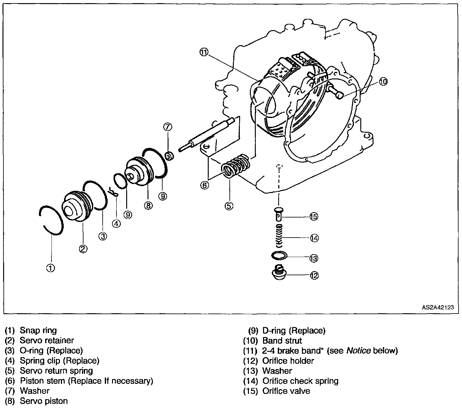 Notice: Use a piece of wire to secure 2-4 brake band so that it is not damaged by being allowed to fully expand.