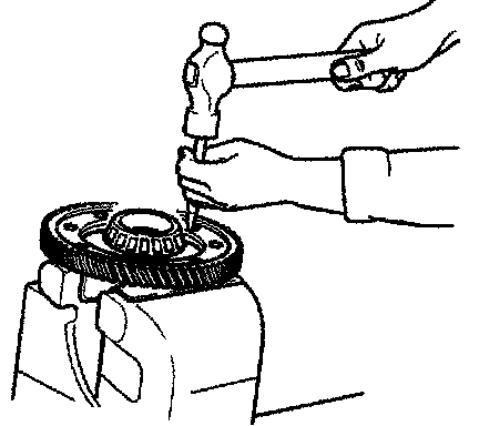 2. Place gear case on a vise and knock pin out with suitable pin punch and hammer. Then remove two thrust washers, two pinion gears and pinion shaft.
