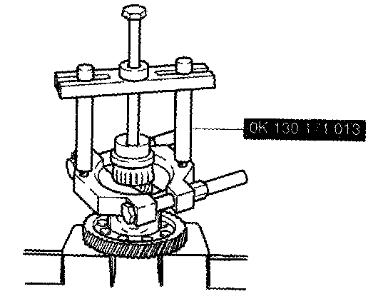 3. Remove side bearing inner race (side opposite ring gear) from gear case with SST (OK130 171 013) or equivalent.