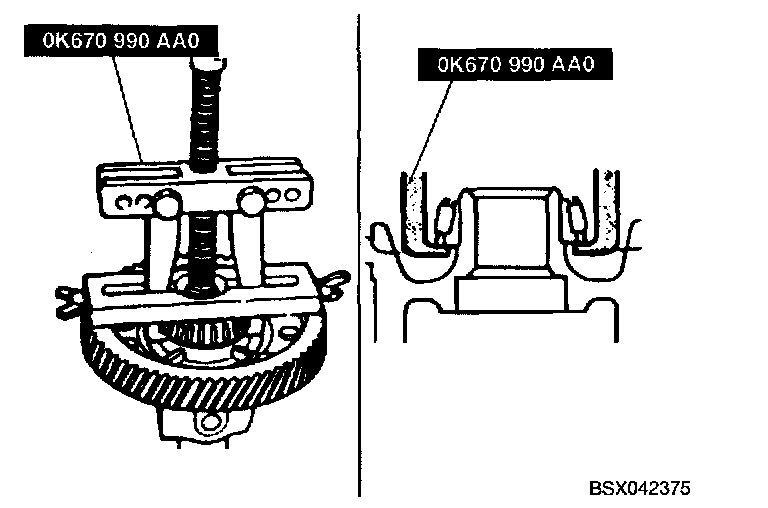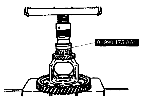 5. Remove side bearing (ring gear side) from gear case with SST (OK670 990 AAO) or equivalent.