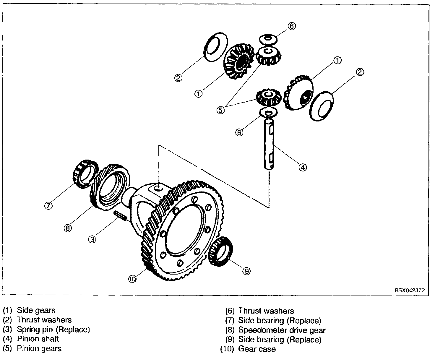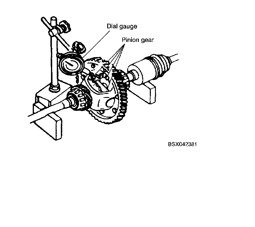 1. Before disassembly, measure backlash of side gears and pinion gears. If not within specification, replace differential assembly.