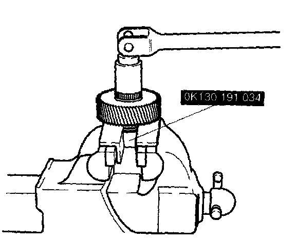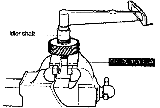 a. Turn idler gear assembly and SST (OK130 191 034) over and secure gear in vise.