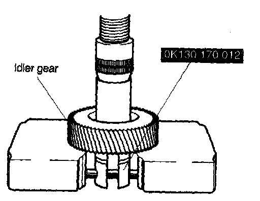 2. Remove bearing outer race from idler gear with SST (OK130 170 012).