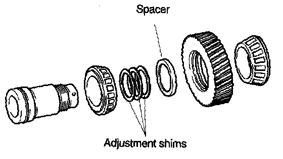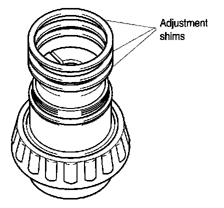5. If specified preload cannot be obtained within specified tightening torque, adjust by selecting proper adjustment shims.